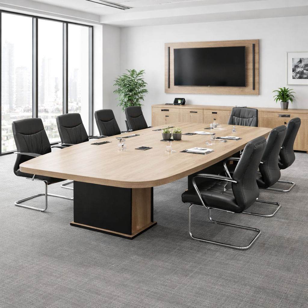 Upgrade your meeting space with this barrel-shaped boardroom table, designed to combine professional style with collaborative functionality. Ideal for corporate offices, conference rooms, and executive environments, this table creates a central space that encourages communication and engagement.