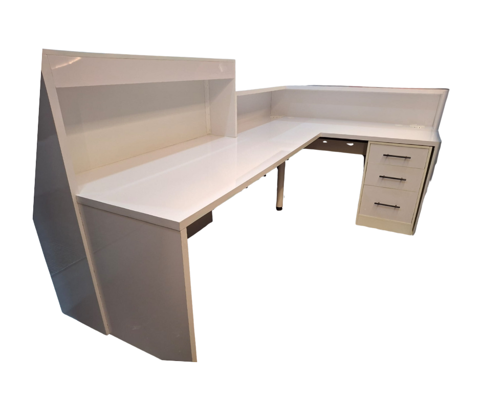 Discover Cindy’s ABC Reception Counter, a stunning piece of premium office furniture crafted by Office Furniture Fabricators in Johannesburg, Gauteng. ADD 10% to the price for GLOSS WHITE.
